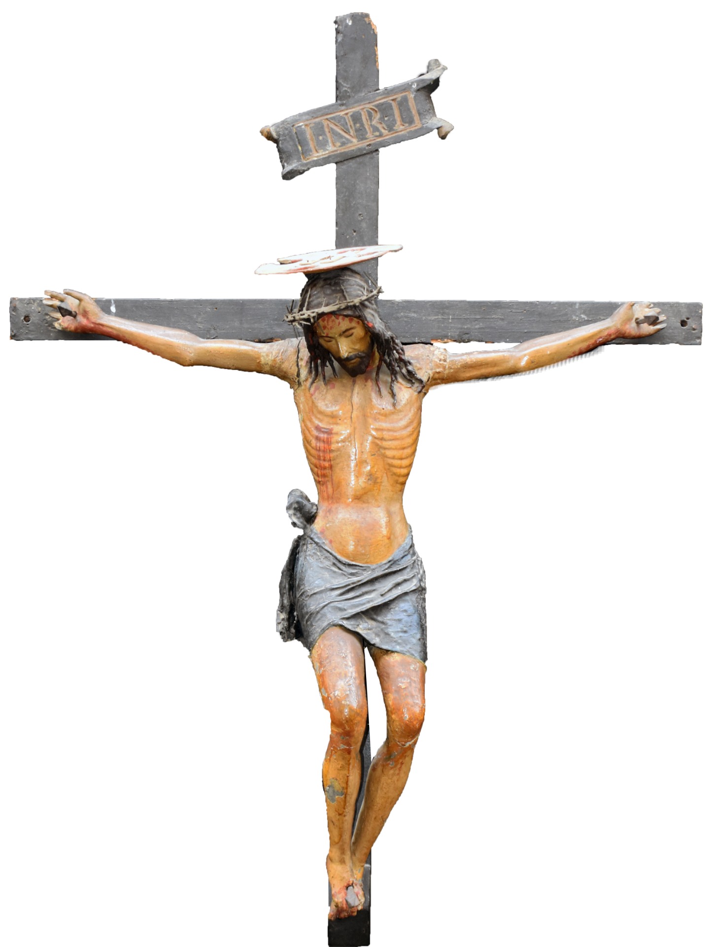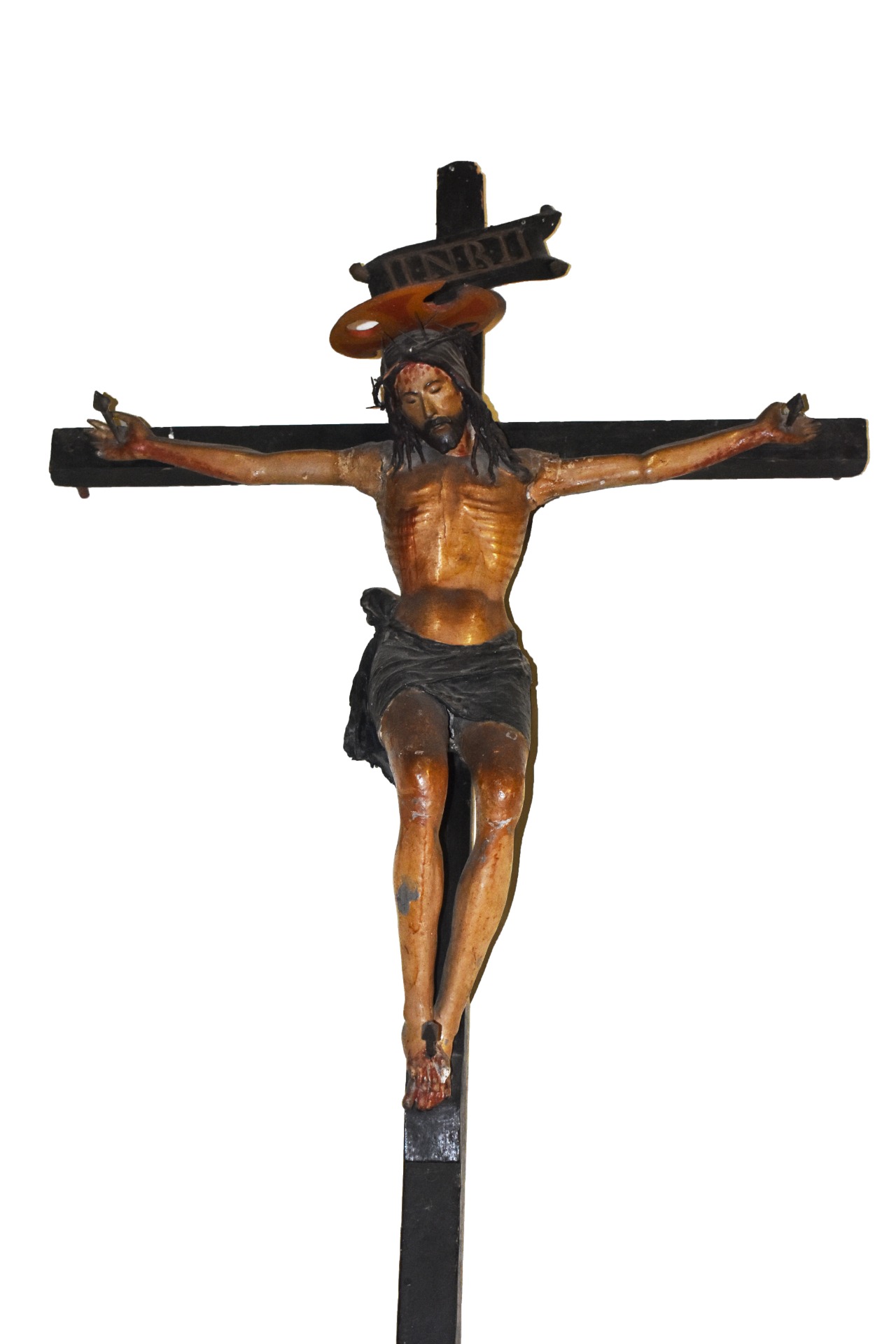 cartiglio con iscrizione "I.N.R.I" a caratteri capitali dipinti.